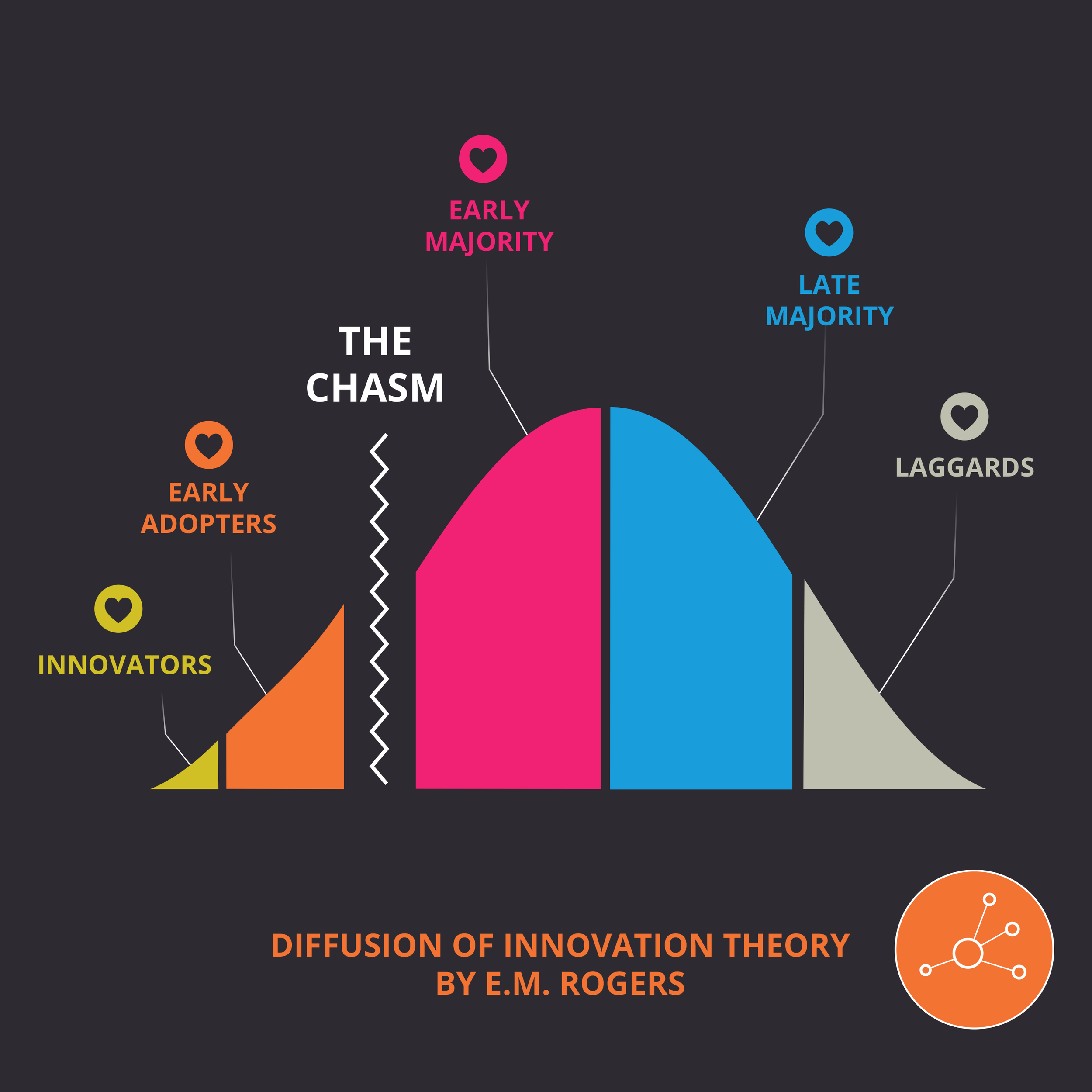 As a starting point, let’s borrow insights from the diffusion of innovations theory by E.M. Rogers. At its most basic level this theory categorises audiences based on their adoption behaviour: