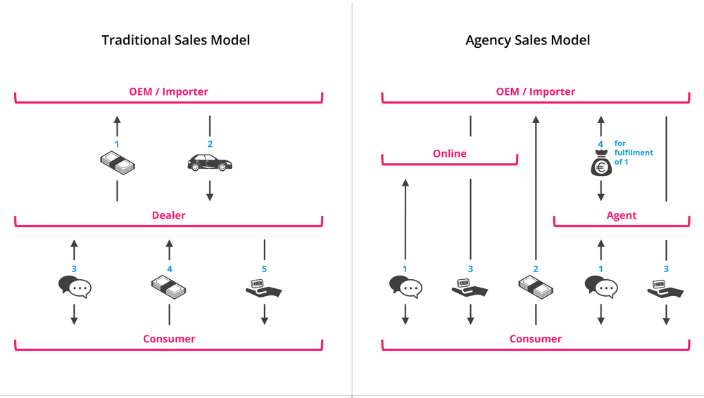 There are variations in the agency model approach, but essentially it means the manufacturer sells directly to the customer, and their dealerships act as facilitators (or agents) who receive payment for the services they complete. This is a retail arrangement and is a fundamental sea change for the industry.